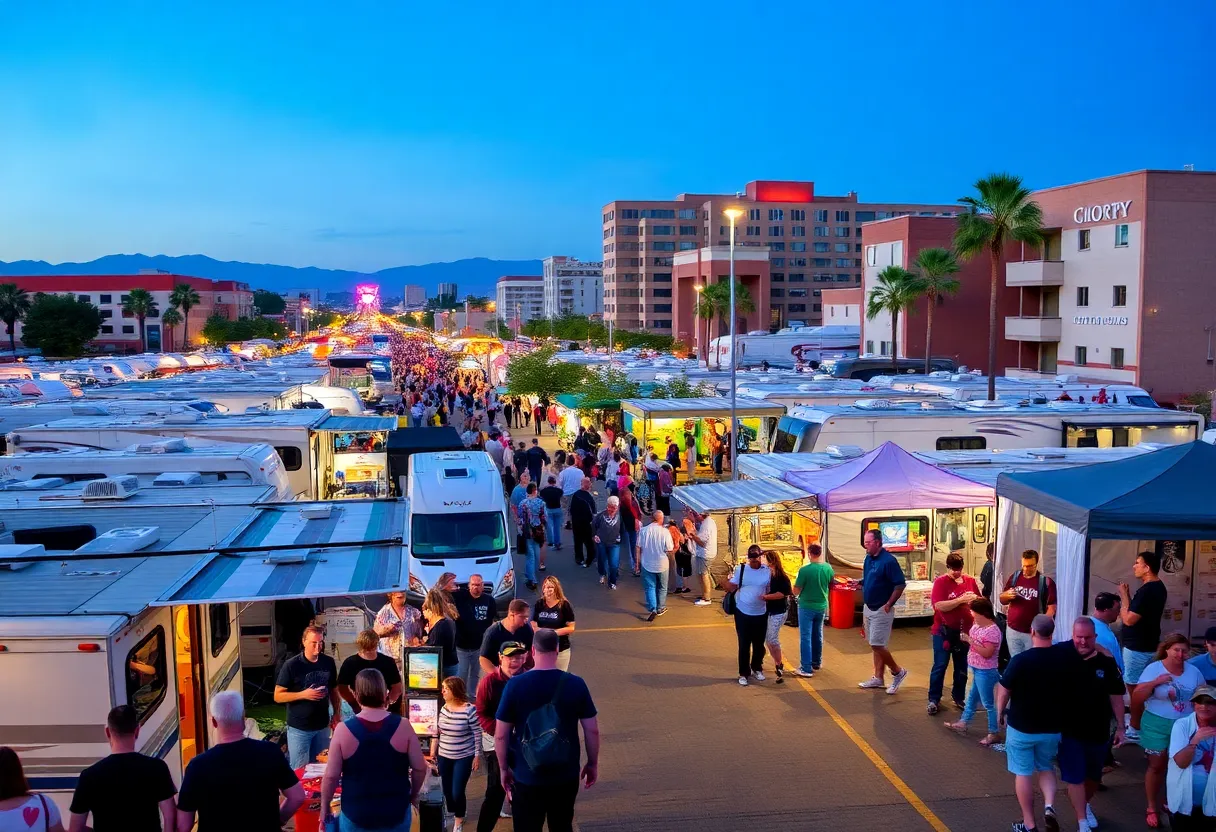 Crowd enjoying various events in Chattanooga including RV expo and concerts