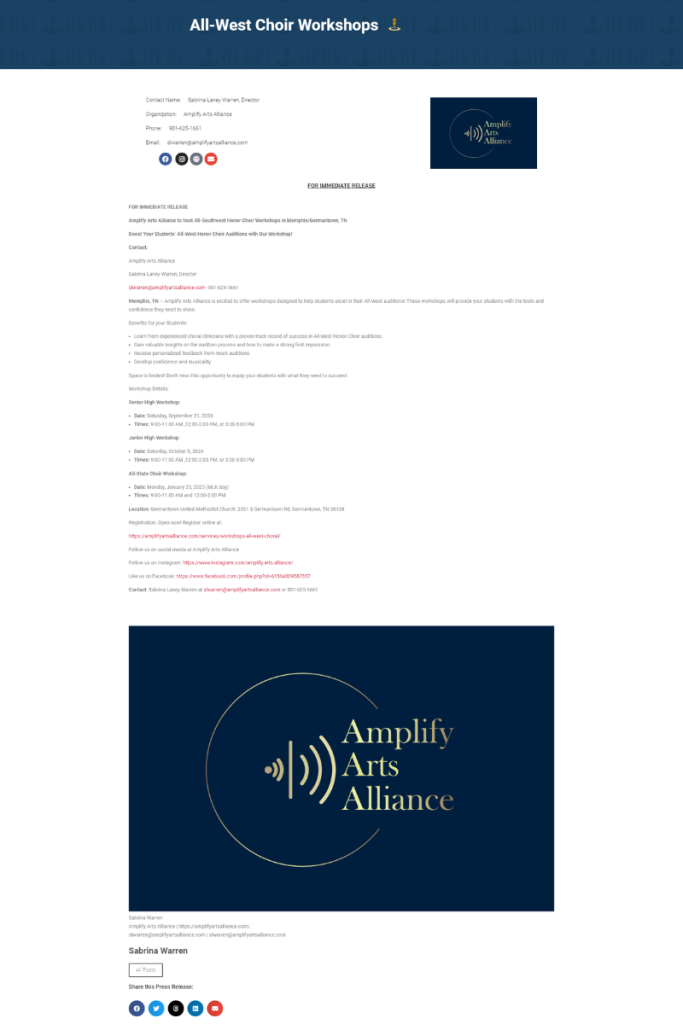 Amplify Arts Alliance PR: All-West Choir Workshops