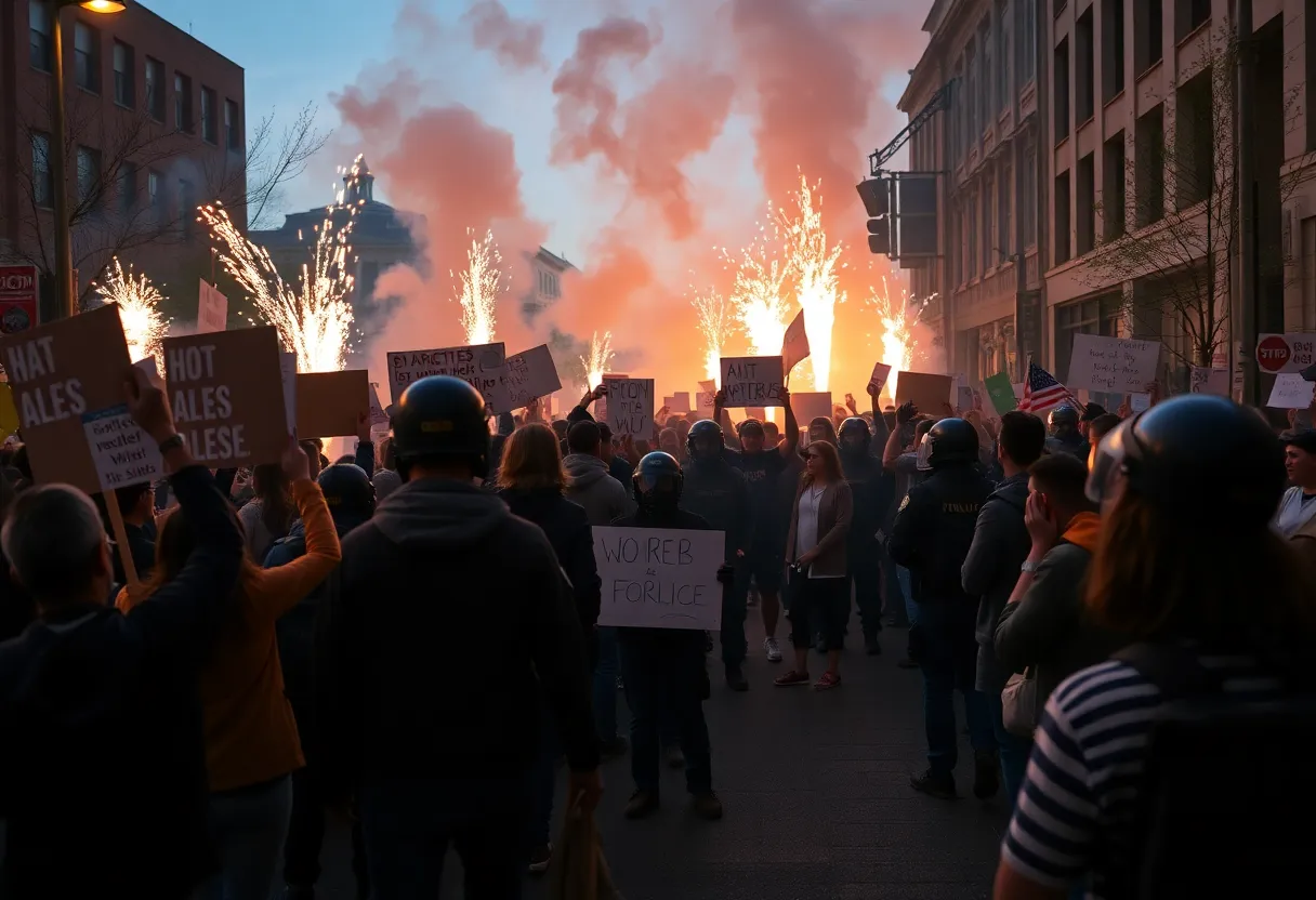 A riot erupted at an ICE facility in Portland during a protest called ‘No Kings.’ Initially peaceful, the demonstration quickly escalated to clashes between protesters and police, resulting in injuries and numerous arrests. The Portland Police Bureau declared an unlawful assembly as tensions rose, leading to the use of tear gas and flashbang grenades by authorities. The incident reflects ongoing national issues surrounding immigration enforcement and community response to federal actions.