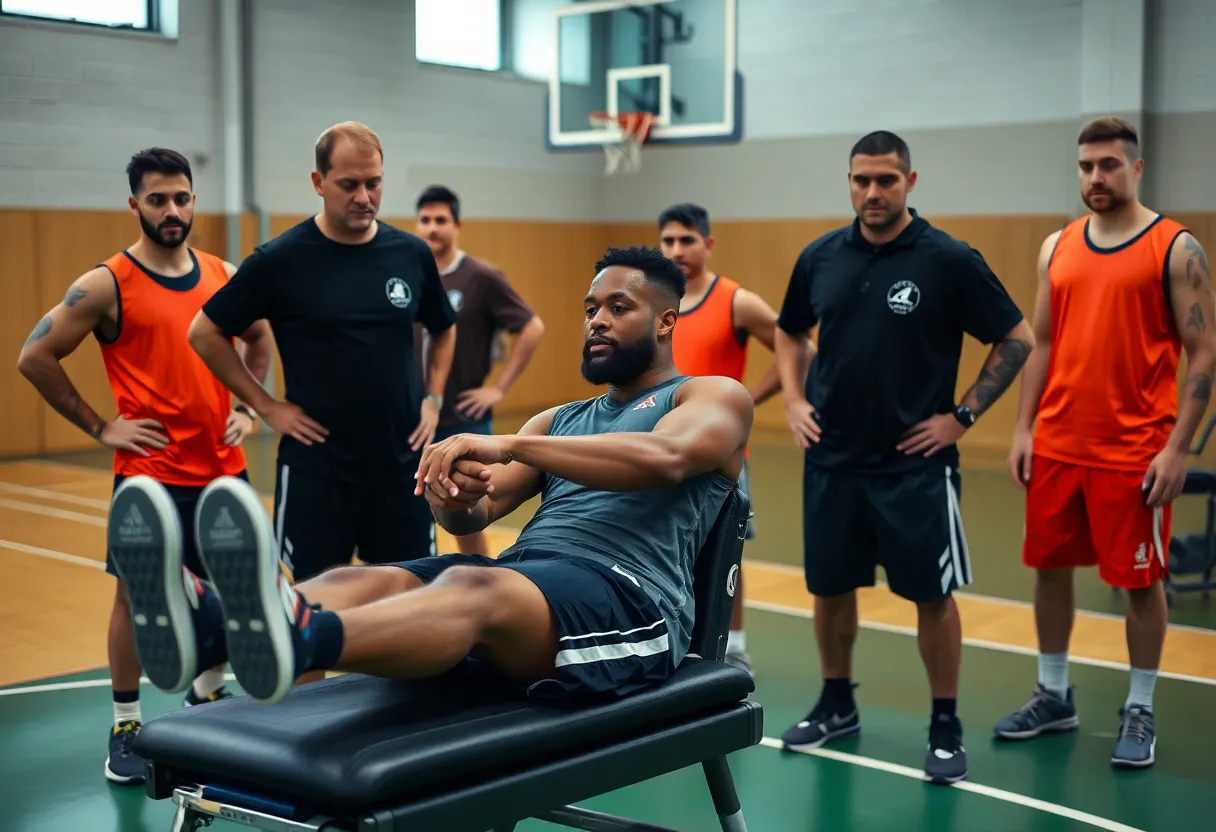 Professional basketball player undergoing rehabilitation in training facility